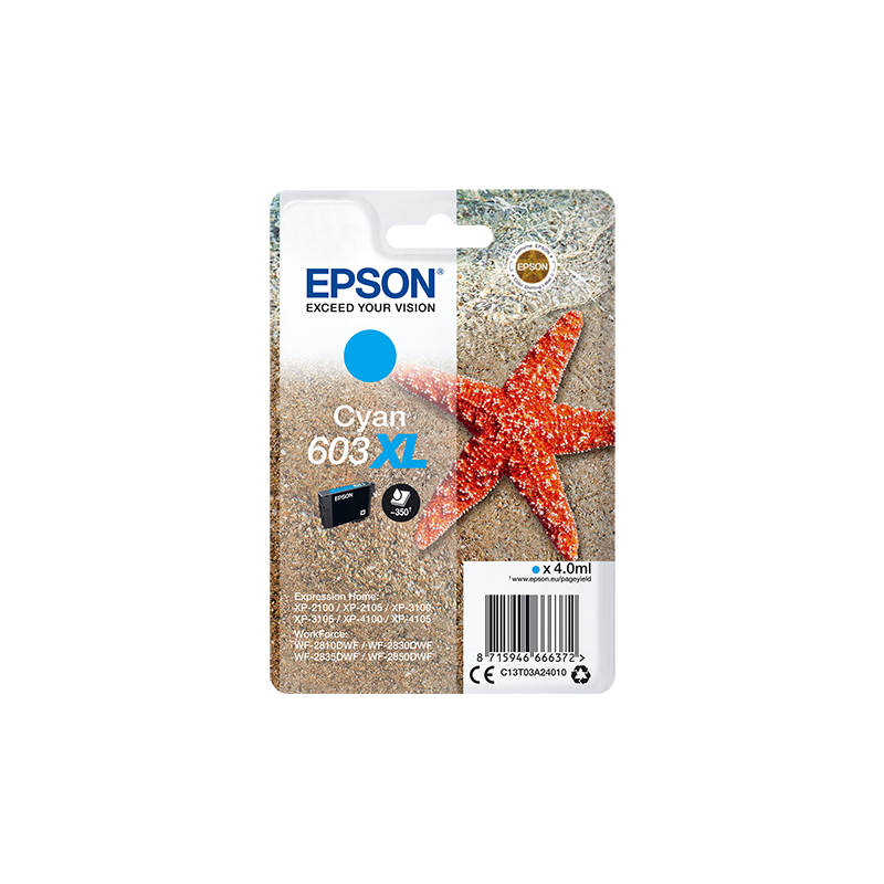 Económica y fiableDisfruta de copias fiables, nítidas y de colores vivos con una inversión mínima gracias a la tinta 603 de cuatro colores de Epson. Con la combinación de tintas negras pigmentadas y de colores de tipo colorante, este pack de tintas crea copias definidas y llenas de color.